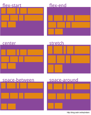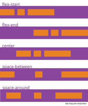 4. justify-content属性:定义了项目在主轴上的对齐方式;