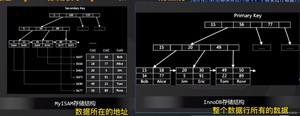 也就是MyISAM中的叶子节点的最终是存储的是地址,然后再根据地址来查找文件, InnoDB的叶子节点都是直接把数据给存储的