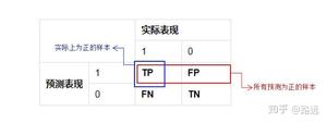 精准率(Precision)又叫查准率,它是针对预测结果而言的,它的含义是在所有被预测为正的样本中实际为正的样本的概率,意思就是在预测为正样本的结果中,我们有多少把握可以预测正确,其公式如下: