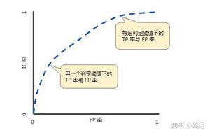 与前面的P-R曲线类似,ROC曲线也是通过遍历所有阈值来绘制整条曲线的。如果我们不断的遍历所有阈值,预测的正样本和负样本是在不断变化的,相应的在ROC曲线图中也会沿着曲线滑动。