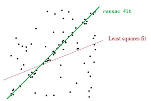 RANSAC的另一个缺点是它要求设置跟问题相关的阀值。此外,RANSAC只能从特定的数据集中估计出一个模型,如果存在两个(或多个)模型,RANSAC不能找到别的模型。