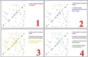 考虑一个最小抽样集的势为n的模型(n为初始化模型参数所需的最小样本数)和一个样本集P,集合P的样本数#(P)>n,从P中随机抽取包含n个样本的P的子集S,来初始化模型M;