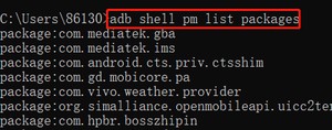 adb shell pm list packages:列出当前设备/手机,所有的包名