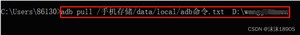 adb pull <手机端路径/文件或文件夹> <pc机路径>:把设备(手机)的文件或文件夹复制到本地。注意点同上