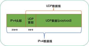 IPv4协议(Protocol)字段用值17来标识UDP,UDP数据报头部通常是8字节,IPv4头部之后紧接着是UDP头部,然后是UDP数据Payload(如有)。