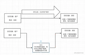 考虑生活中一个常见的例子,客户想买房,房东有很多房,提供卖房服务,但房东不会带客户看房,于是客户通过中介买房。