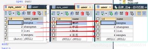 实例说明:编写两个表 sys_user和 user, 编写存储过程,当 两个表的 id 相同时 将 user 表中的 name 更新为 sys_user 中的 user_name