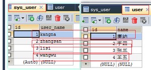 3. 数据的对比,编写的存储过程会将 user表中的 name 全部更新