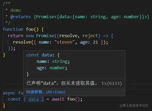 好的代码,注释肯定不能少,就目前而言基于 的项目大部分都是使用的 , 相对于 的支持没有那么完善,大部分包括我目前工作所在的团队,使用的 版本都是采用 并且不带 支持,对于曾经用过或者习惯使用强类型的,难以离开 编码提示的人来说,这其实很难受,那么目前 项目可以通过 通过加注释的方式去过渡类型,配合 在某些情况能够达到使用 差不多的体验