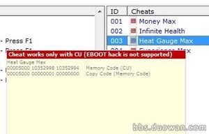 PS3 Cheats Editor 也可以自己加入代码,CU码不需要- 10000h 软件在写入EBOOT的时候会自动 -10000h..目前我发现自己新建游戏加入代码后,保存不完整,比如加入3条代码,保存后可能只有1条 或者2条。。