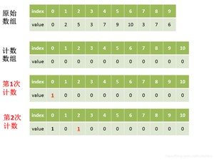 将数组长度定为,即不仅要找出最大值,还要找出最小值,根据两者的差来确定计数数组的长度。