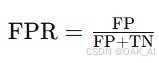 - 假正率 (FPR) 表示被错误标记为正类的负类样本的比例,(注意,这个不是精确率)计算公式为: