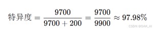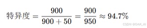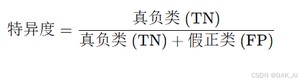 是用来评估分类模型在正确识别负类(非目标类)的能力的统计指标。它与召回率(查全率)是互补的,召回率专注于正类的识别,而特异度则关注于负类的正确识别。