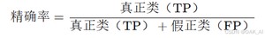 精确率是在所有被模型预测为正类的样本中,实际上为正类的样本的比例,也称为查准率。这是一个衡量结果精确性的指标,特别用于关注正类预测的情况。计算公式为: