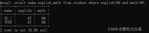 注:在我们执行english+10,english+math 这些语句时,对于我们的存入数据是不会有影响的,我们在客户端看到的所有表都是一个“临时表”。