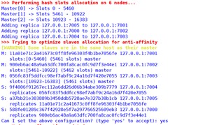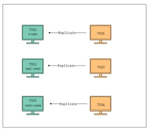 实践举例说明:当我们创建一个Cluster时,系统会默认给我们分好片(你选择接受系统分配的配置),比如现在有7000-7005六个节点,其中我们分配3个主节点(7000-7002),3个从节点(7003-7005):