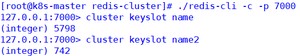 - cluster keyslot <key> :计算键 key 应该被放置在哪个槽上。