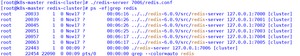 - Redis Cluster有四个主节点:7000-7003,两个从节点:7004与7005