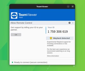 存在实验性 Wayland 支持,但 TeamViewer 建议使用 Xorg 会话。