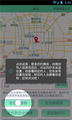 4、点击“定位到微信”按钮,待微信导入信息后即可成功实现虚拟定位。