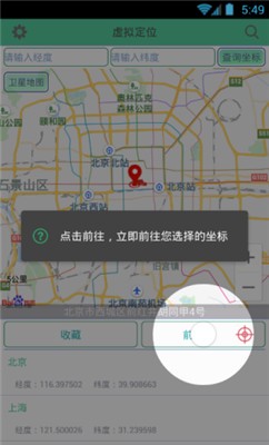 3、点击地图下方的“前往”按钮即可前往虚拟定位位置;