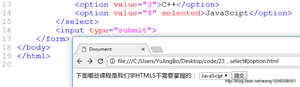 1,默认情况下,提交时,它将option里面的内容作为提交的内容,但是通常我们不这样做,我们通常给opton设置一个value属性,属性值我们通常用数字。