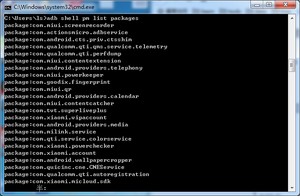 此时会列出手机中所有已安装的转件包,为了快速找到自己想要的软件的包名,可以使用grep/findstr等命令进行过滤。