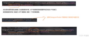 DatagramSocket 这个对象中,不持有对方(客户端) 的 ip 和端口的. 所以进行 send 的时候,就需要在 send 的数据包里,把要发给谁这样的信息,写进去,才能够正确的把数据进行返回