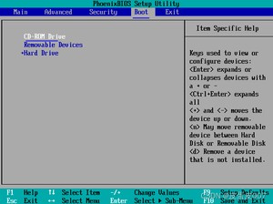 使用方向键选择boot>选择+-键把CD放第一位