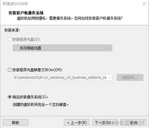 下一步>下一步>选择稍后安装操作系统