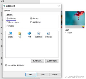 鼠标右键选择个性化>主题>相关的设置>桌面图标设置