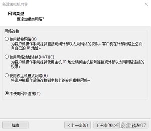 下一步>选择不使用网络连接