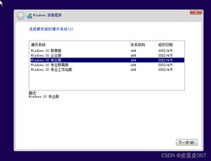 选择windows 10专业版安装>下一步