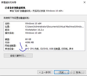 下一步>点击自定义硬件