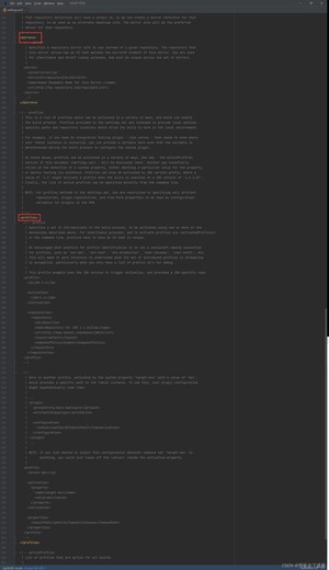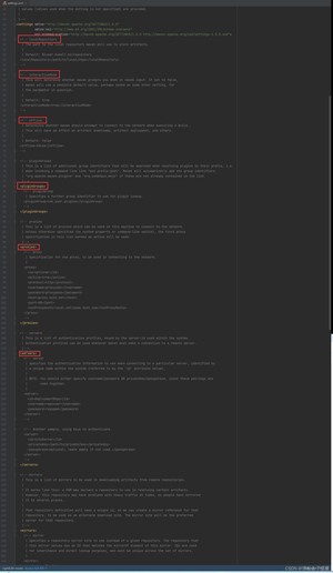 打开settings.xml,我们初步认识一下settings.xml中的标签。