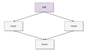 简单解释下,ClassC 同时继承了 ClassA 和 ClassB,ClassC 的对象在调用 ClassA 和 ClassB 中重写的方法时,就不知道该调用 ClassA 的方法,还是 ClassB 的方法。