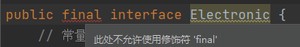 3)不要在定义接口的时候使用 final 关键字,否则会报编译错误,因为接口就是为了让子类实现的,而 final 阻止了这种行为。