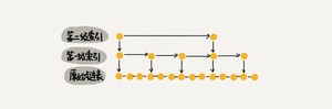 如下图所示:如果每三个结点抽一个结点做为索引,索引总和数就是 n/3 + n/9 + n/27 + … + 9 + 3 + 1= n/2,减少了一半。所以我们可以通过较少索引数来减少空间复杂度,但是相应的肯定会造成查找效率有一定下降,我们可以根据我们的应用场景来控制这个阈值,看我们更注重时间还是空间。