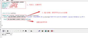 首先在用Oracle序列号之前,我们首先得创建一个序列然后就可以通过CURRY、NEXTVAL,获取当前表中的返回sequence的当前值、下一个squence的值。可以通过下面的语句来创建Squence: