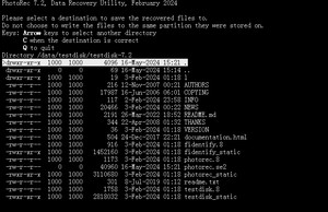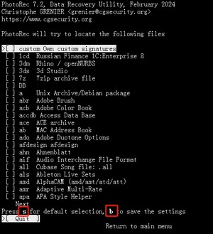 [File Opt] :要恢复的文件类型,按字母s可以全选和非全选([ ]表示没有选择,[ X ]:表示选择,下图是取消全选的状态,默认全选),按字母b是保存选择(主意保存)