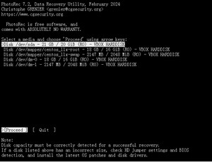 选择要恢复的/dev,本机只有一个sda,只能选第一个,点击>[Proceed ]