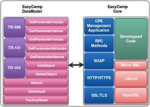 如果要实现自己的产品开发,借鉴来自于EasyCwmp的设计理念,主要分为两个层次:分别是协议core层和数据模型datamodel层。 更多设计和开发过程可以参考官网:http://www.easycwmp.org