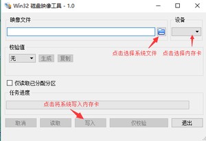 系统的安装方法是用Win32DiskImager软件把系统(img文件)写入内存卡中,然后把内存卡插到树莓派上开机。