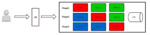 当A组升级完毕,负载均衡重新接入A组,再把B组从负载列表中摘除,进行新版本的部署。A组重新提供服务。