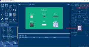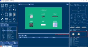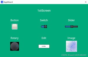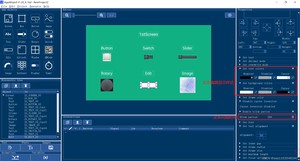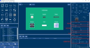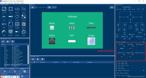 下设计界面。 emWin的小部件在GUIBuilder可以直接通过拖放来放置和调整大小,而不必编写源代码。可以按上下文菜单添加其他属性,可以通过编辑小部件的属性来微调。 设计好的界面可以保存为 C 文件,直接添加进工程中使用,但是界面的交互逻辑需要用户自定义的代码来实现。