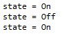 下面编写一小段代码测试一下,即先将状态置为On,保存后再将状态置为Off,然后通过备忘录管理员角色恢复初始状态。