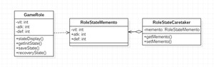 简单记录了游戏角色的生命力、攻击力、防御力,通过saveState()方法来保存当前状态,通过recoveryState()方法来恢复角色状态。