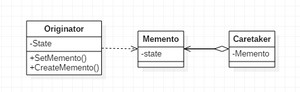 其中,Originator是发起人,负责创建一个备忘录Memento,用以记录当前时刻它的内部状态,并可使用备忘录恢复内部状态;Memento是备忘录,负责存储Originator对象的内部状态,并可防止Originator以外的其他对象访问备忘录Memento;Caretaker是管理者,负责保存好备忘录的Memento,不能对备忘录的内容进行操作或检查。