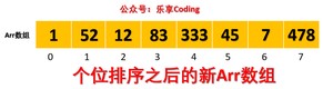 步骤二:第一次是找个位接下来就是找十位的数字,重复步骤一,在找出百位的数字,同样重复步骤一。最后arr数组就会按照升序排序结束。