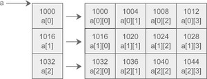 假设数组a中第0个元素的地址为1000,那么每个一维数组的首地址如下图所示: